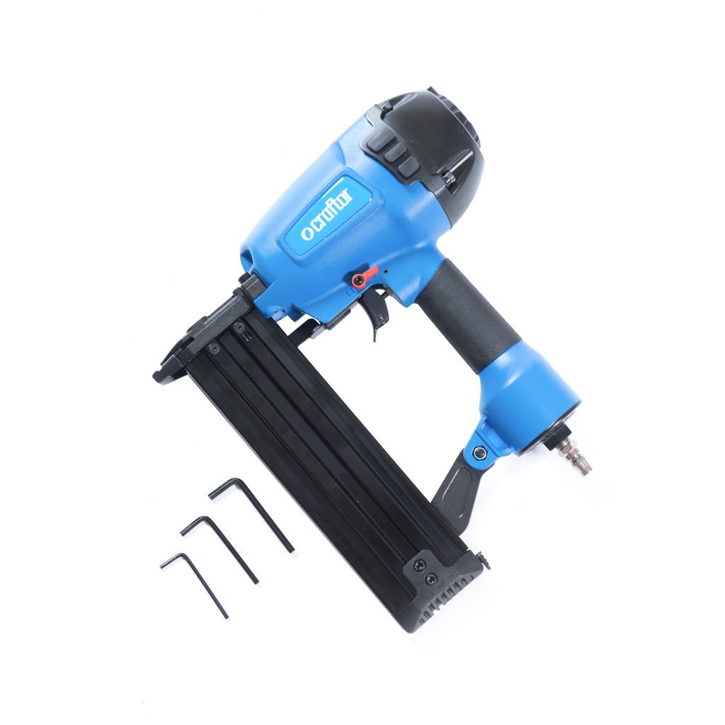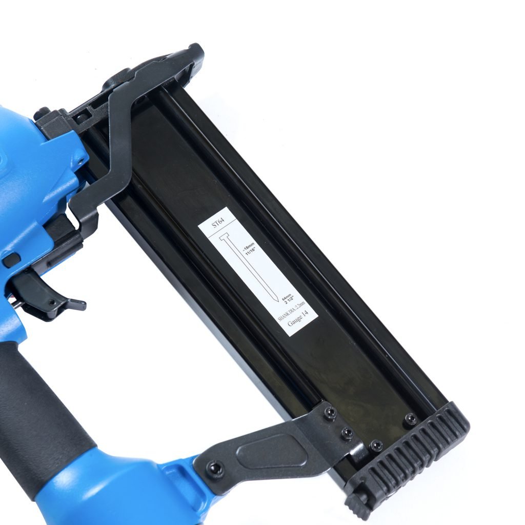 Air Gun ST64 is suitable for the packaging industry, construction, furniture manufacturing, decoration industry, fastening for wood, wood frame, plywood to concrete nailing, brick and concrete walls, baseboards, and floorboards. It is also possible to attach 1 mm thick metal shelves to the brick masonry walls (ground) surface. Nailer usable for Construction framing, Nailing wood to concrete (steel nails), Flooring Top Nailing, Truss building, Fencing, Floor boarding, Cabinet building, Paneling, Trimming, Pallet, and packaging, and more applications. Hard carrying case included. Craftor top-nailer is manufactured and tested to a very tight tolerance band for each of these attributes. The combination of these attributes minimizes the potential for nail jams, prevents tool damage, and makes it possible to drive the fasteners into any type of wood.