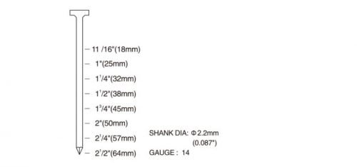 According to flooring installation standards, solid floorboards have to be stapled using a Secret Stapler/Nailer Gun. Floorboards from 130mm wide must be top-nailed in addition. There we recommend using ST64 as a floorboard top-nailer for top-nailing hardwood floorboards when it is required by flooring installation standards. Craftor Top Nails have a 4.5mm head size. Thence more cost-effective concrete nailer is.